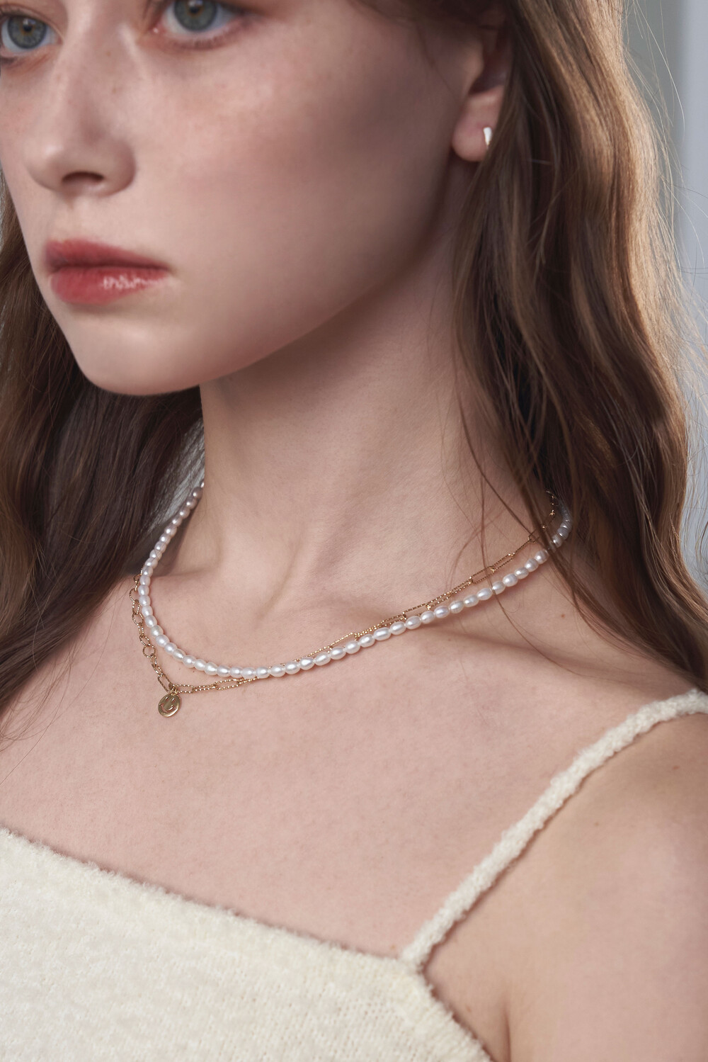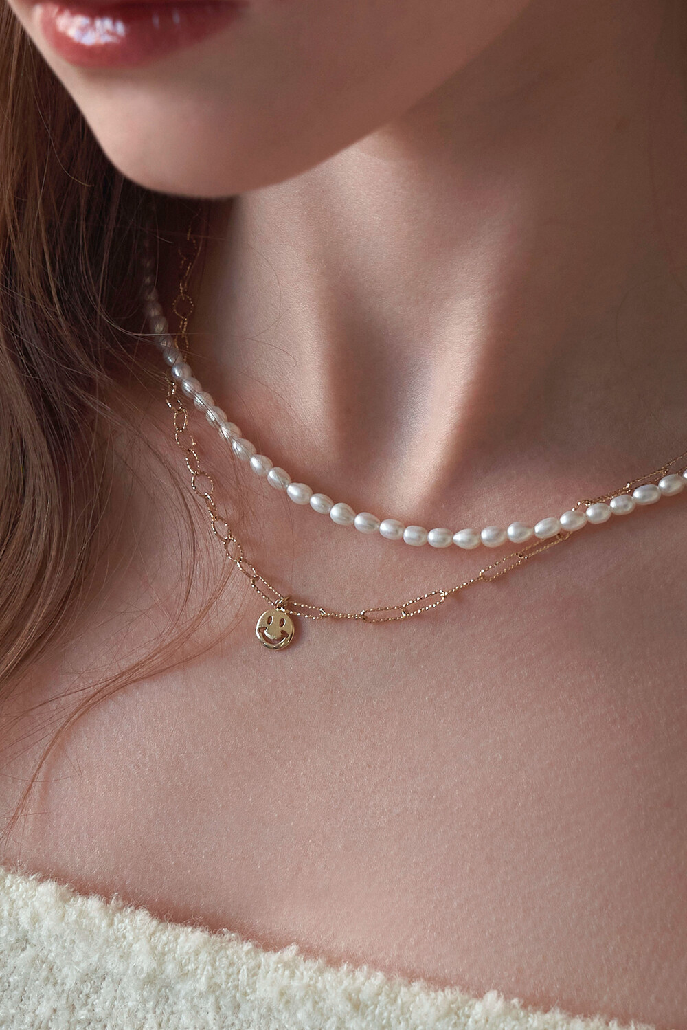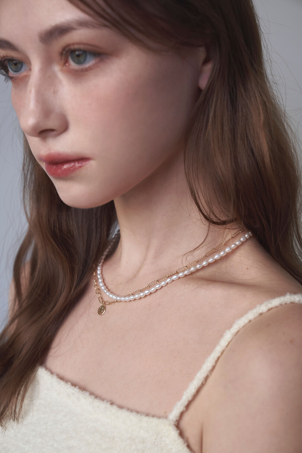 빛에 따라 오묘한 색감을 띄는 오벌 담수진주 목걸이는