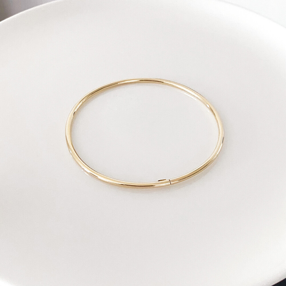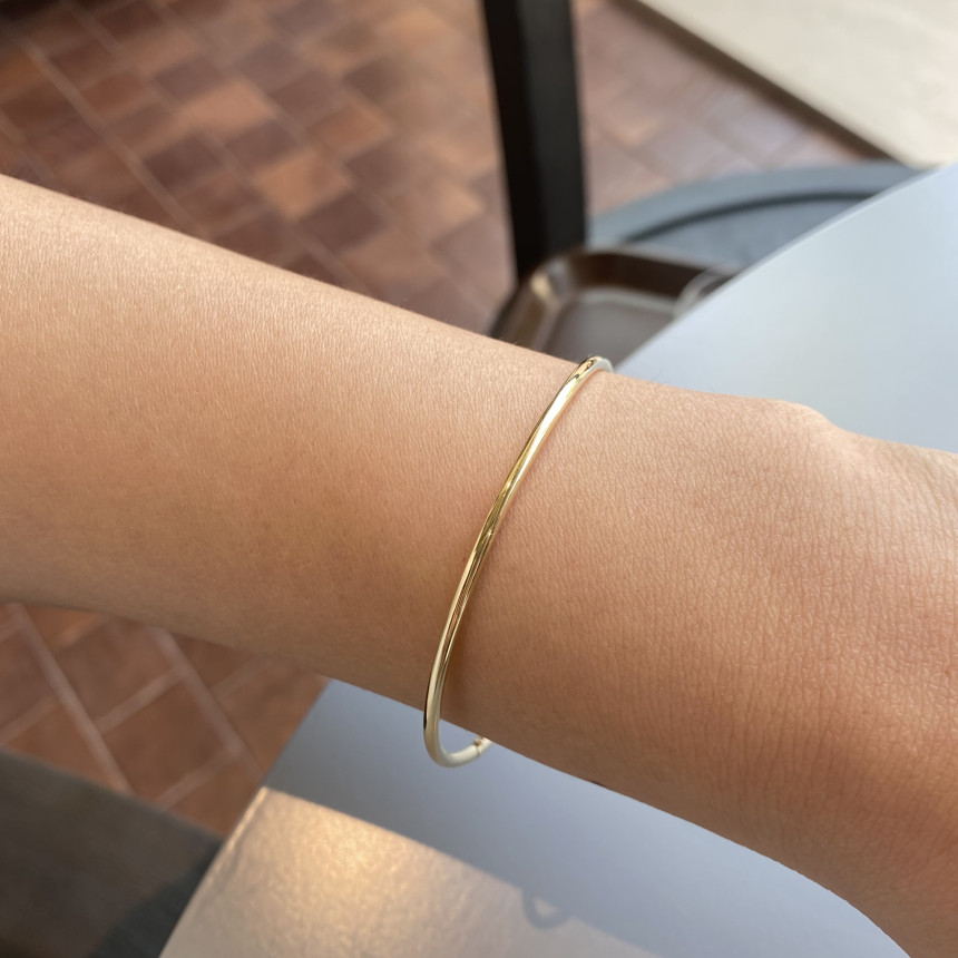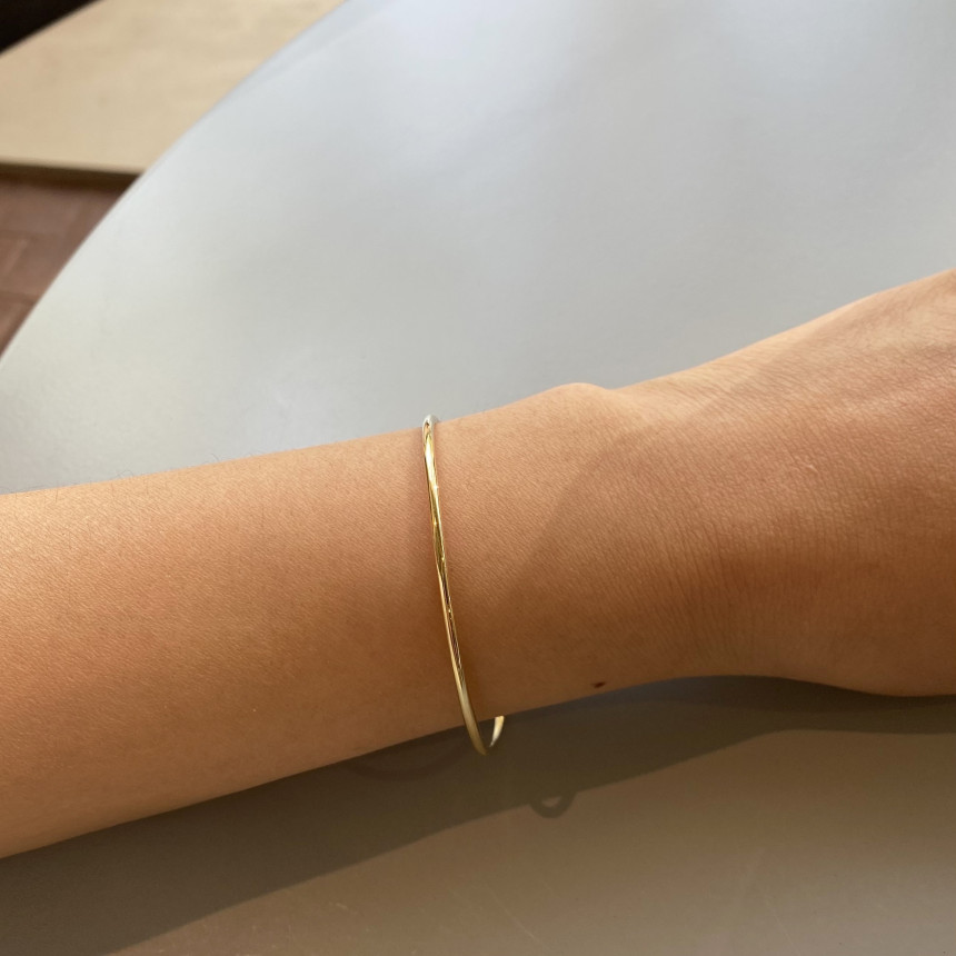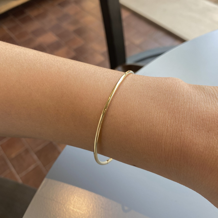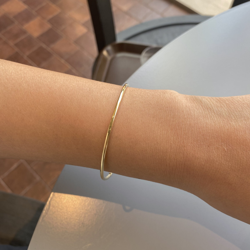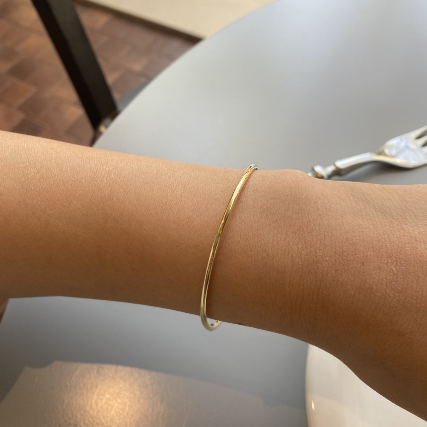 매끈한 골드 파이프라인이 매력적인 원형 뱅글 팔찌입니다.