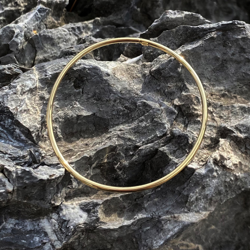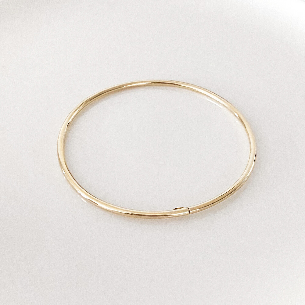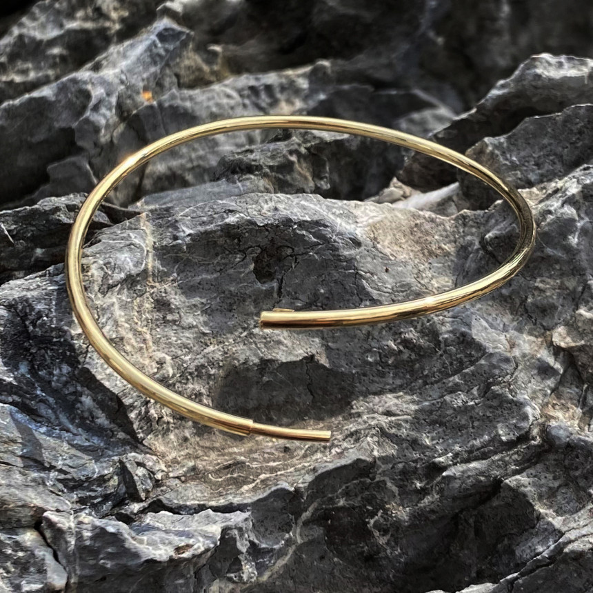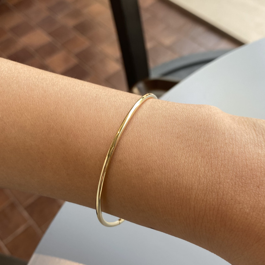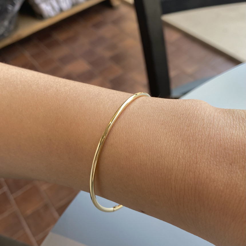 매끈한 골드 파이프라인이 매력적인 원형 뱅글 팔찌입니다.