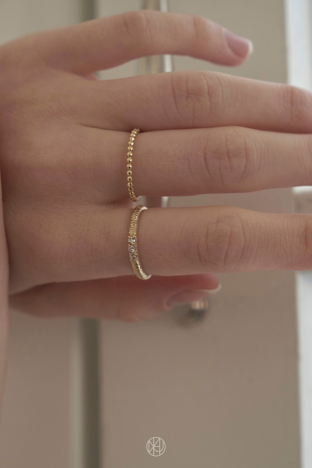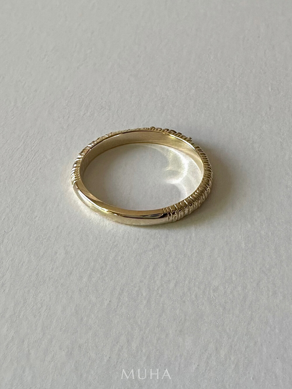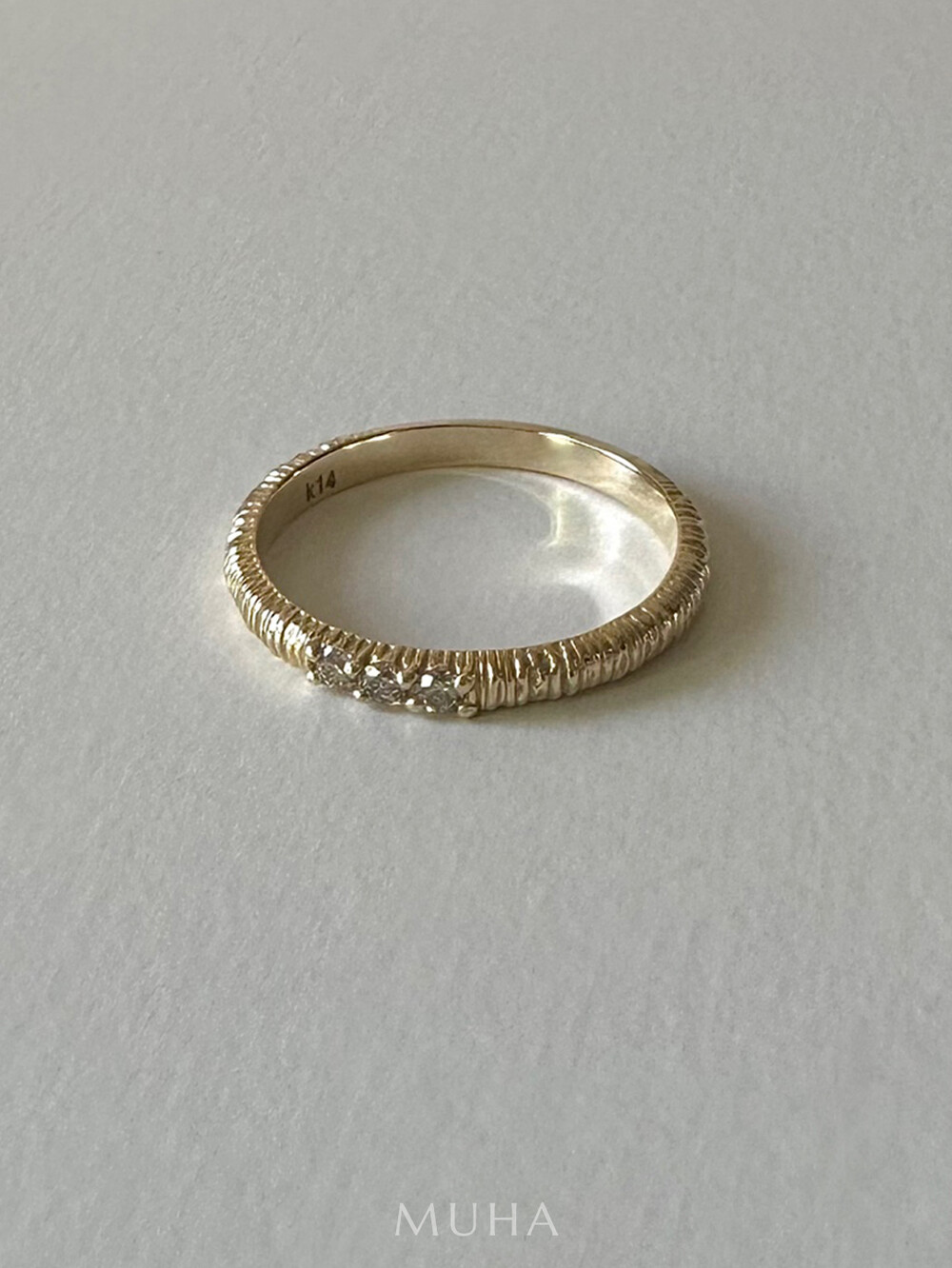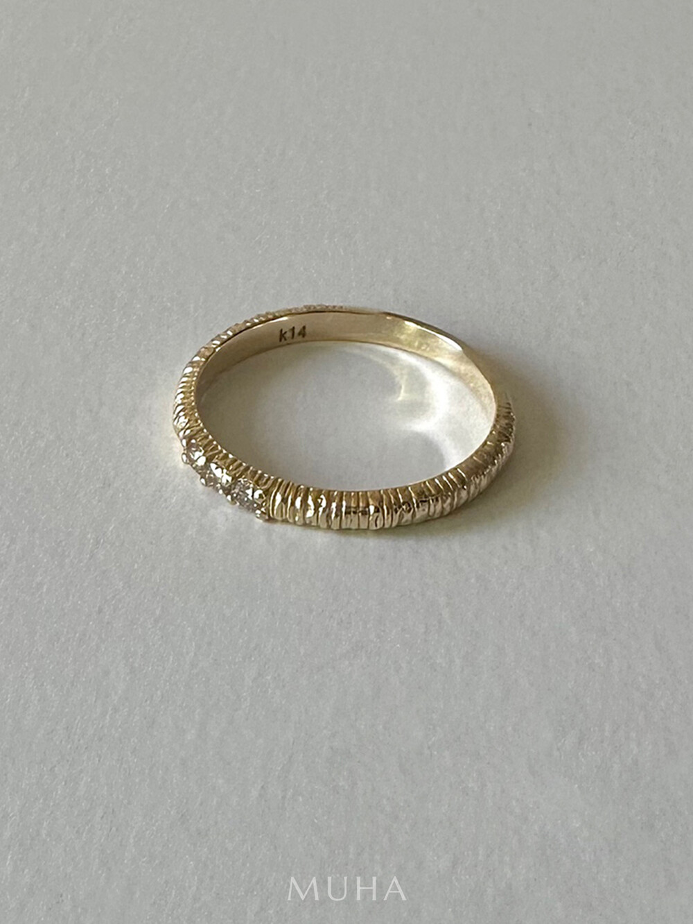 유니크한 질감의 밴드에 천연 다이아몬드를 세팅한 반지입니다.