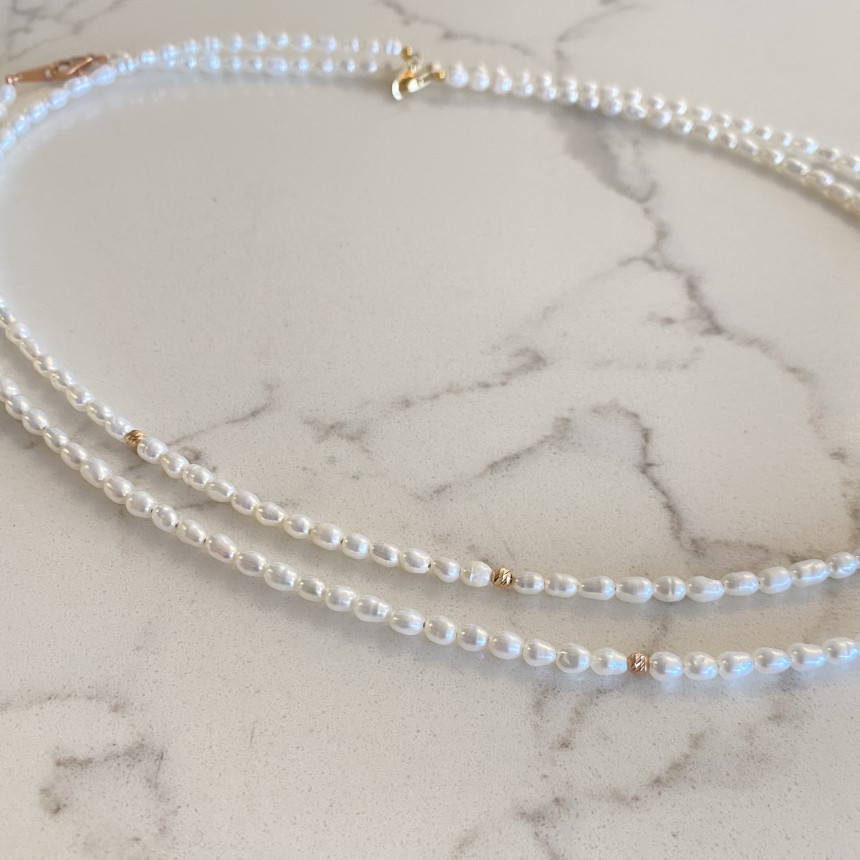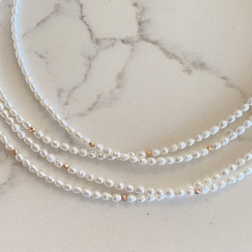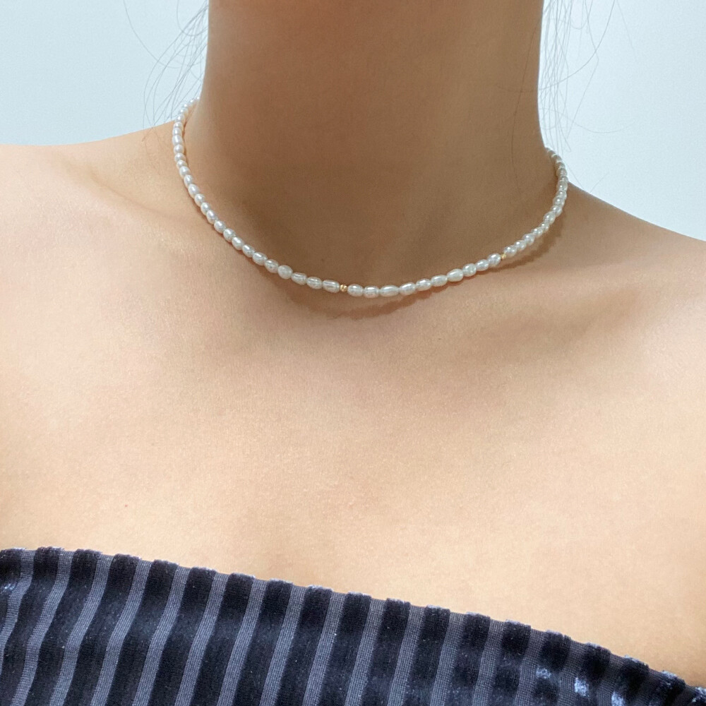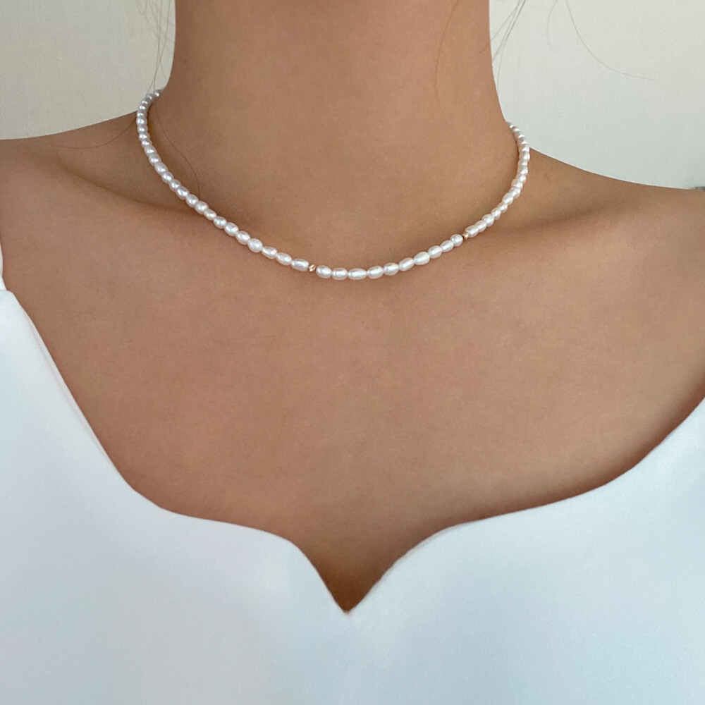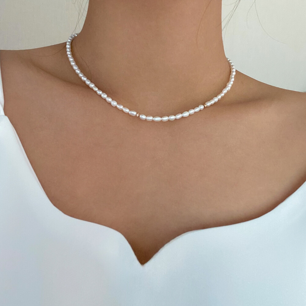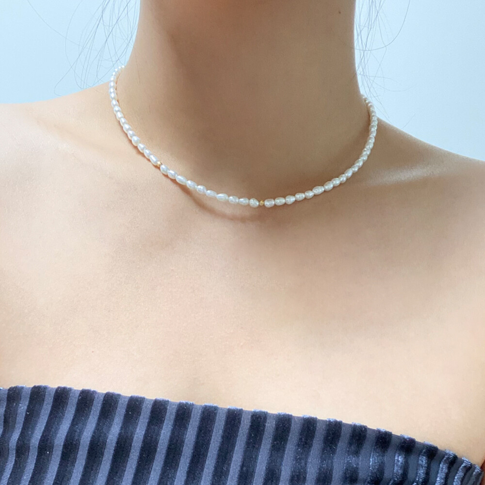 컷팅볼 담수진주 비드 목걸이